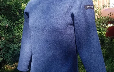 Kajk bespoken jersey is made out of felted 100% lamb wool fabric, naturally warm, breathable and wind resistant. Compared to knitted garment, Kajk is more windproof and is long lasting.