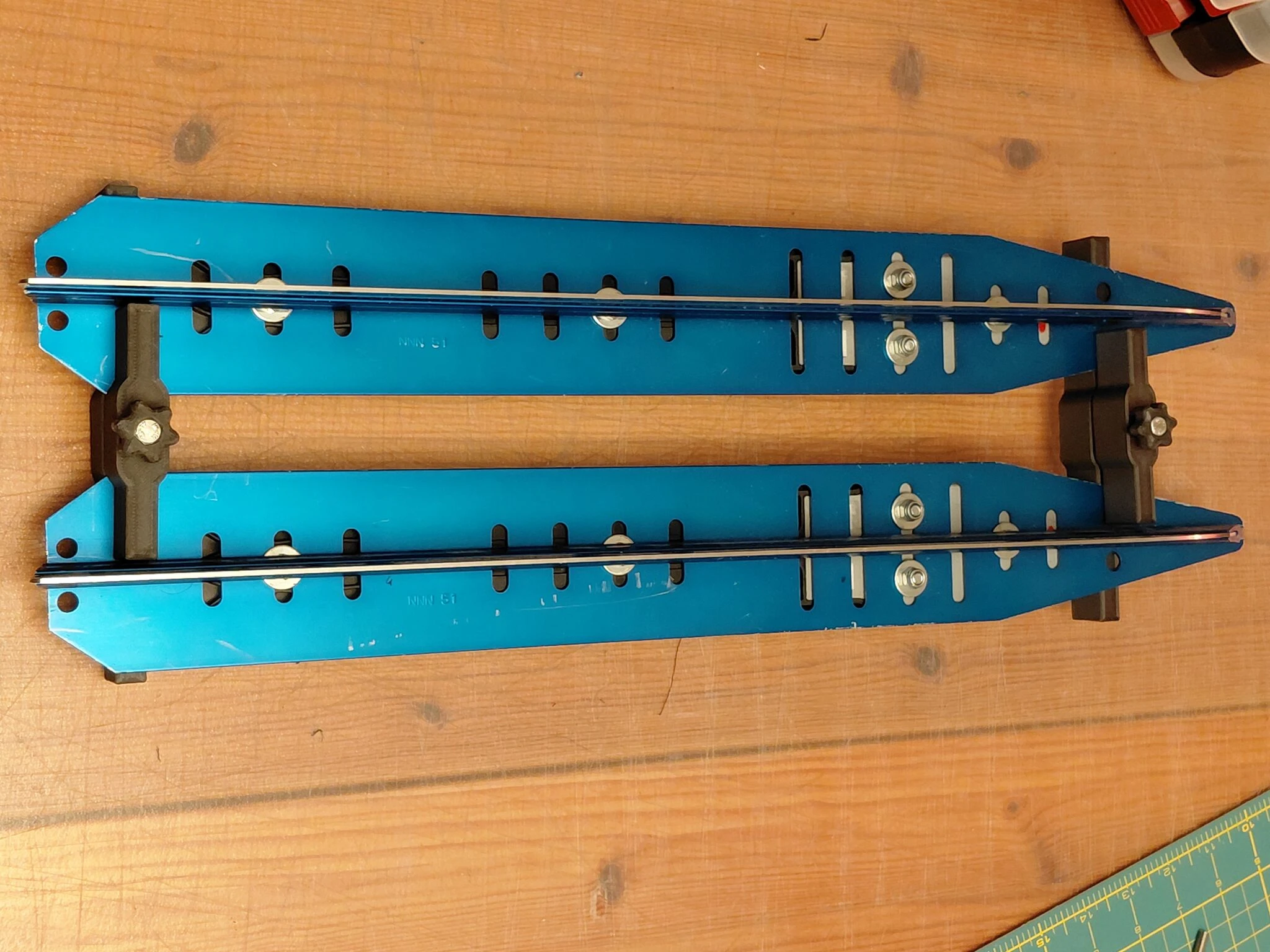 Retkiluistimia teroitettaessa ne pidetään vaakatasossa ja rinnakkain. Nämä kevyet alumiiniset nylon-hiilikuitu profiilt kiristetään luistinten profiilirautoihin ja näin varmistetaan että luistimet eivät heilu teroitettaessa. Kätevät repussa pidettävät.